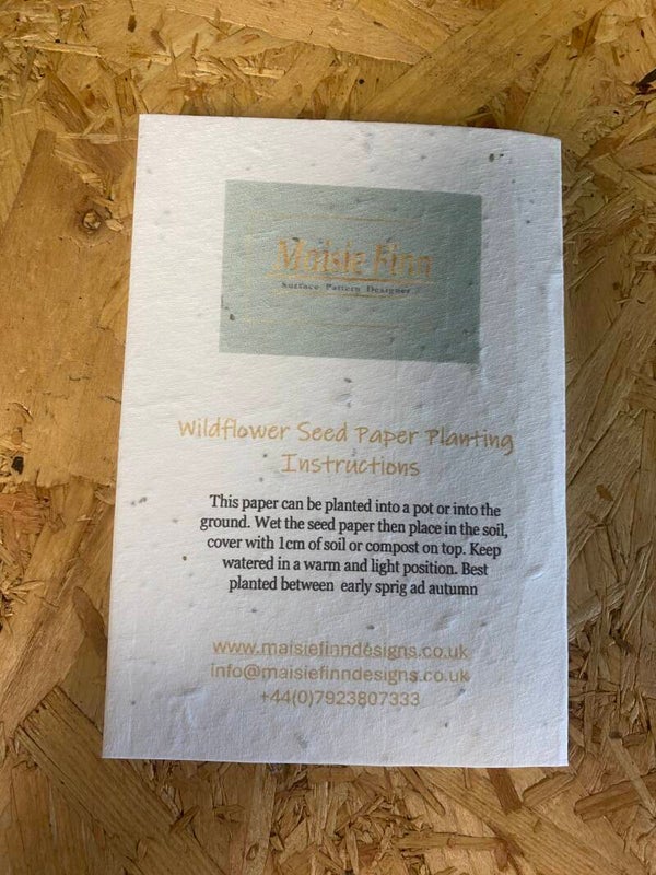 These beautiful handmade cards contain wildflower seeds within the paper which can be planted after use, planting instructions are found on the back of each card. Each design has been created by Maisie Finn. They are C6 in size and are blank inside, therfore suitable for any message or occasion. Each card comes with a recycled brown envolope and is wrapped in biodegradable wrapping.